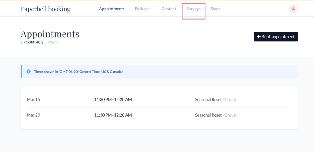 The provider you’re working with sends you a link to book or purchase a package via Paperbell. The checkout process could include various elements like appointment scheduling, contract signing, payments, or surveys depending on what the provider has included. Make sure you fully complete the checkout process in order to secure your appointment.