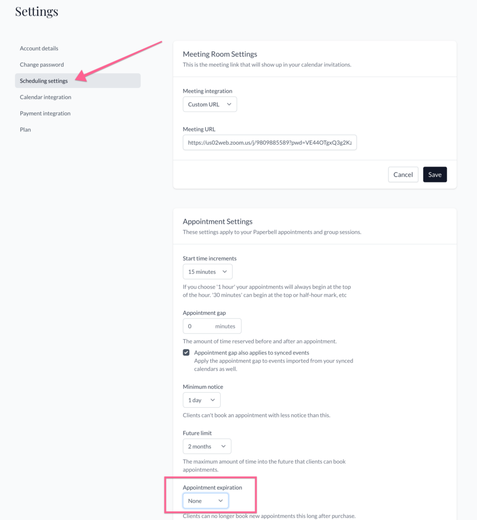 Appointment expiration refers to when the appointments within your client’s package expire.