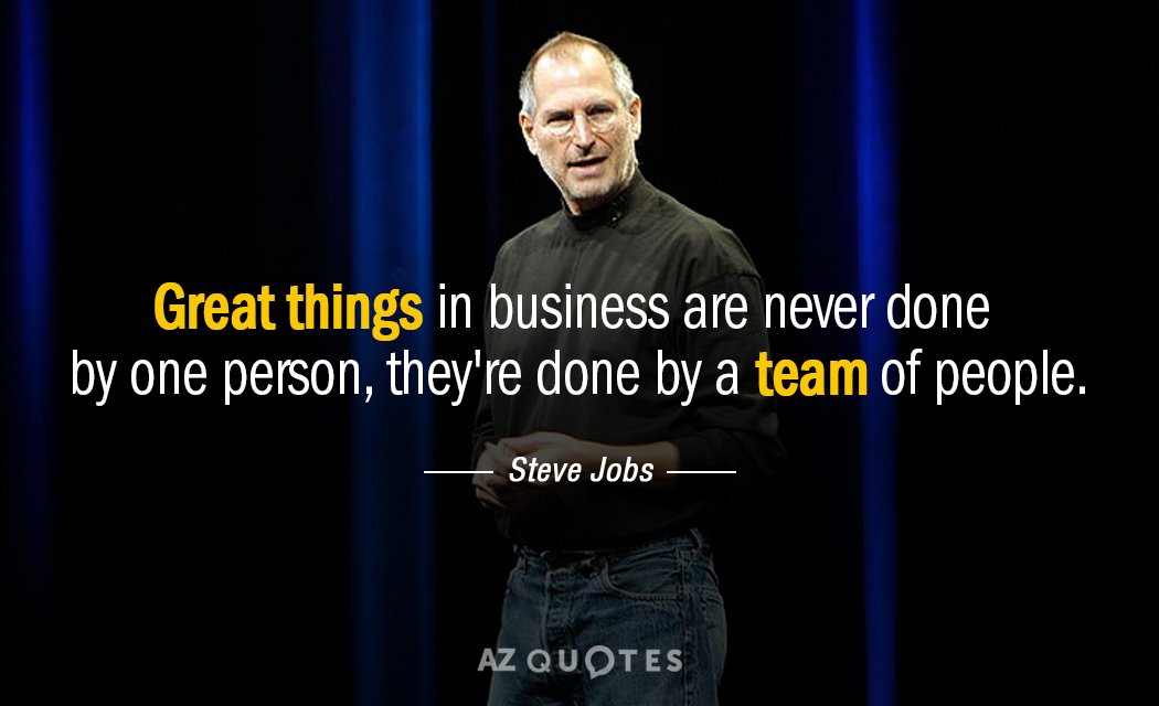 - “Great things in business are never done by one person. They’re done by a team of people.” Steve Jobs