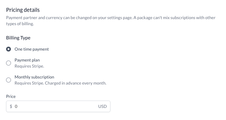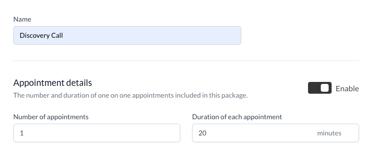 Create a new package with one session and set your preferred session length.