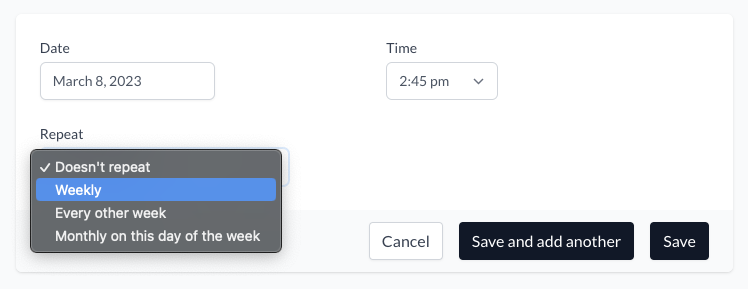 You’ll find the same repeating options when scheduling group coaching sessions.