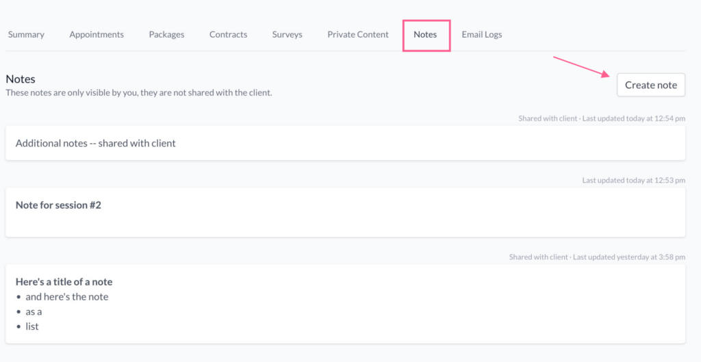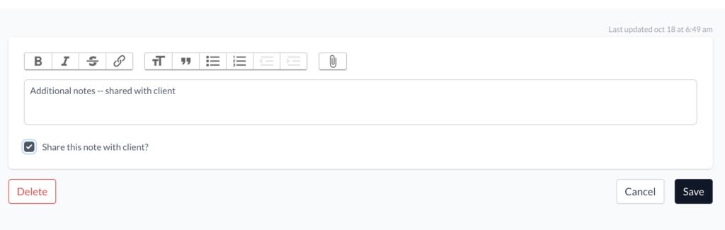 You can also share notes with a client by clicking the box to share while you’re editing a note: