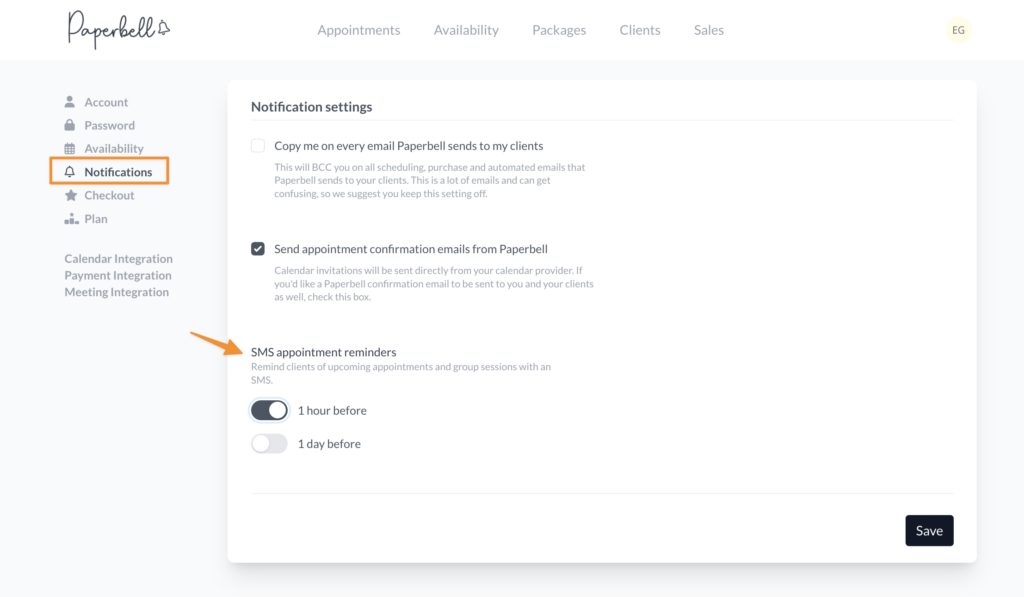 Set them up once per package, and Paperbell automatically reminds every client about their upcoming sessions. No more manual texts, no more no-shows.