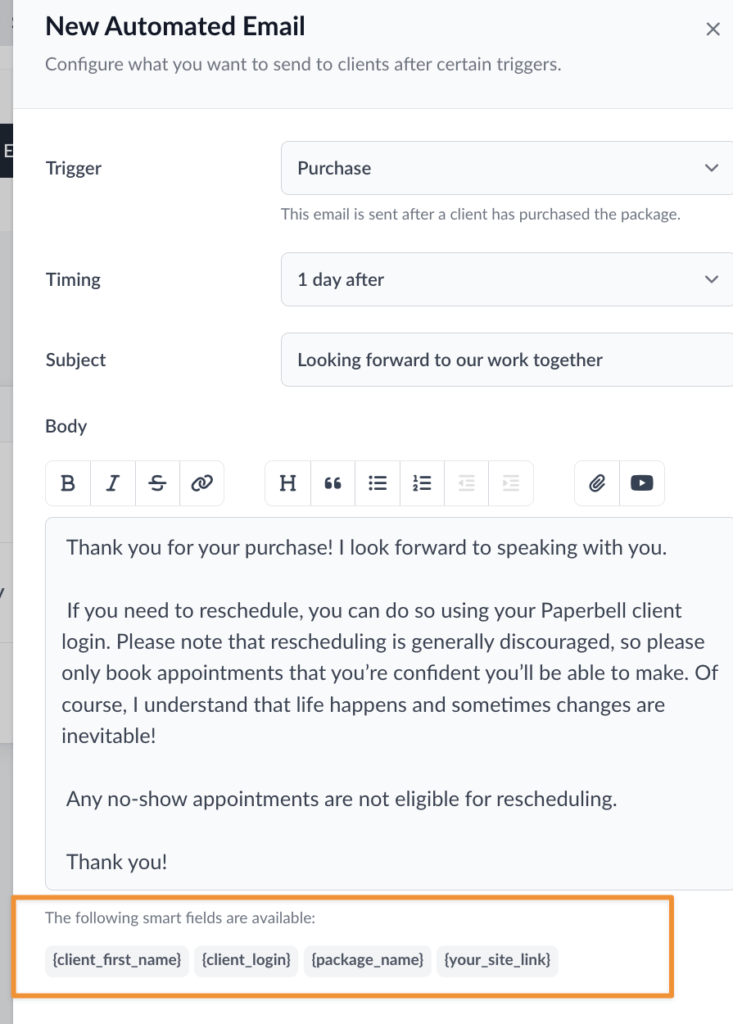You know those handy smart fields like {client_first_name} and {appointment_datetime} that you use to personalize your automated emails?