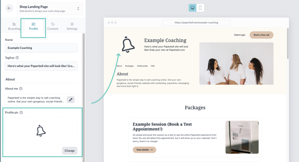 Clients see your profile photo in a few places inside their Paperbell client portal. It’s an easy way for them to differentiate between you and other coaches they may schedule with in Paperbell.