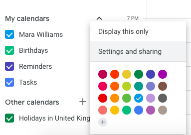 To do this, first open up Google calendar in your secondary account, find the calendar you want to sync and click on “Settings and sharing”.